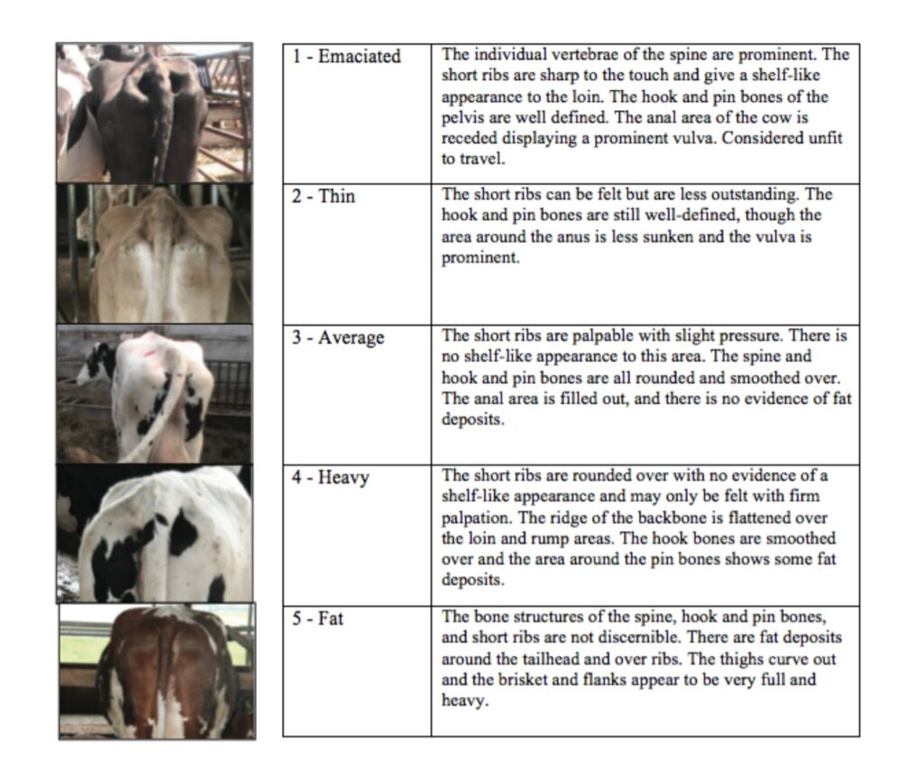 Body Condition – remember that a healthy dairy cow will appear much skinnier compared to their beef-bred counterparts.